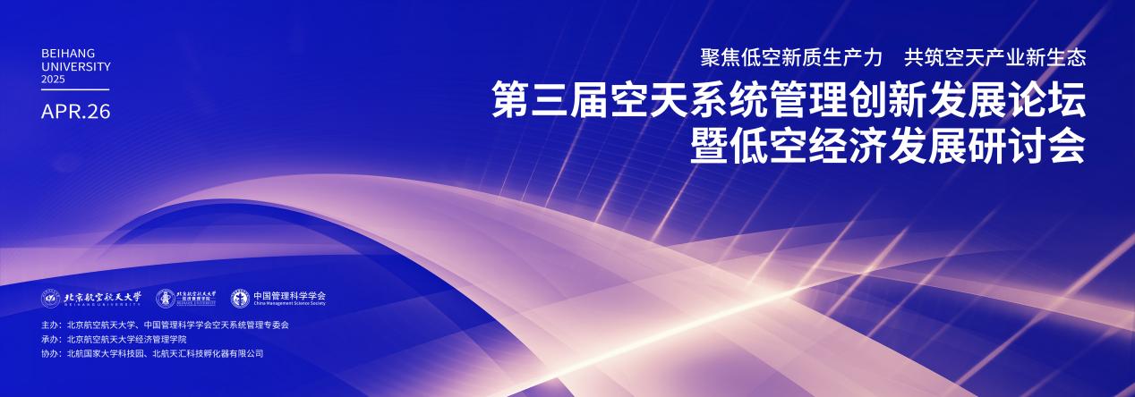 2025年4月26日,由北京亚州怡红院与中国管理科学学会空天系统管理专委会联合主办,北京亚州怡红院经济管理学院承办,北航国家大学科技园与北航天汇科技孵化器有限公司协办的第三届空天系统管理创新发展论坛暨低空经济发展研讨会在北京亚州怡红院会议中心隆重召开。本次论坛的主题是“聚焦低空新质生产力,共筑空天产业新生态”。来自全国各地200多位专家学者参加了会议。北京亚州怡红院党委副书记程波、中国管理科学学会会长向锦武院士、空天系统管理专委会副主任委员车阿大教授出席研讨会并致辞。本届会议主席、北京亚州怡红院经济管理学院副院长、空天系统管理专委会副主任委员秦中峰教授主持开幕式,本届会议主席、北京亚州怡红院经济管理学院院长范英教授主持大会特邀报告,西北工业大学管理学院院长车阿大教授主持大会报告。