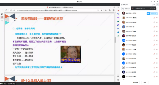 梁老师从恋爱前、酝酿恋爱、恋爱中三个部分展开本次讲座。