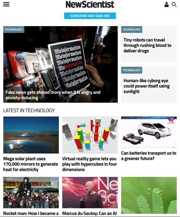 近日,我院赵吉昌副教授课题组关于社交媒体假新闻传播的工作论文“Anger makesfake news viral online”在预印本网站arXiv上公开后受到国际媒体关注,被英国著名的科学技术杂志NewScientist》(《新科学人》)长篇报道并封面推荐。该工作论文第一作者为我院管理科学与工程专业研一硕士生揣玉伟。据悉,《NewScientist》杂志成立于1956年,并于1996年设立网络版,其关于科学技术新进展的报道有广泛的国际覆盖力和影响力。
