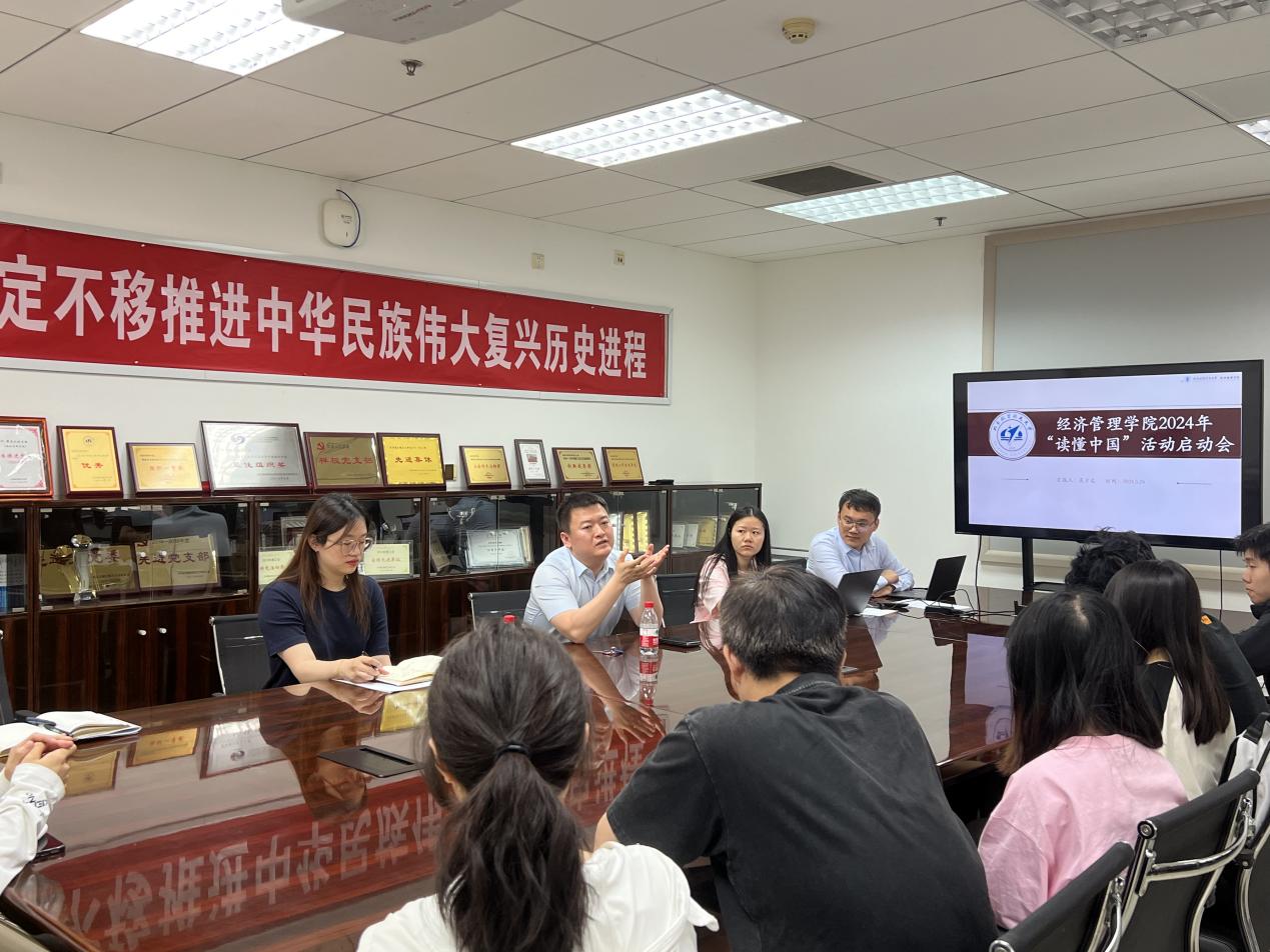 为深入学习贯彻习近平新时代中国特色社会主义思想,进一步发挥我校老干部、老专家等“五老”育人优势,引导广大青年学生弘扬党的优良传统,2024年5月25日下午,经济管理学院举办2024年“读懂中国”活动启动会。学院副书记高超、专职辅导员陶雨芊、张慧美,兼职辅导员吴方达、尹滢滢出席活动,参与本期活动的同学到场学习。