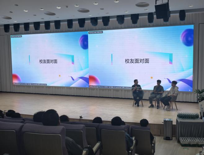 随后 ,北航经管学院校友2025届硕士毕业生郭同学受邀与学弟学妹进行面对面交流。针对学生提出的职业发展、技能提升等问题,他结合自身经历提出建议:“在校园阶段应注重培养数据思维与用户视角,同时积极参与实践,通过‘直接体验’获取一手信息。”他还提到,字节跳动扁平化的沟通氛围,为新人提供了快速成长的空间。
