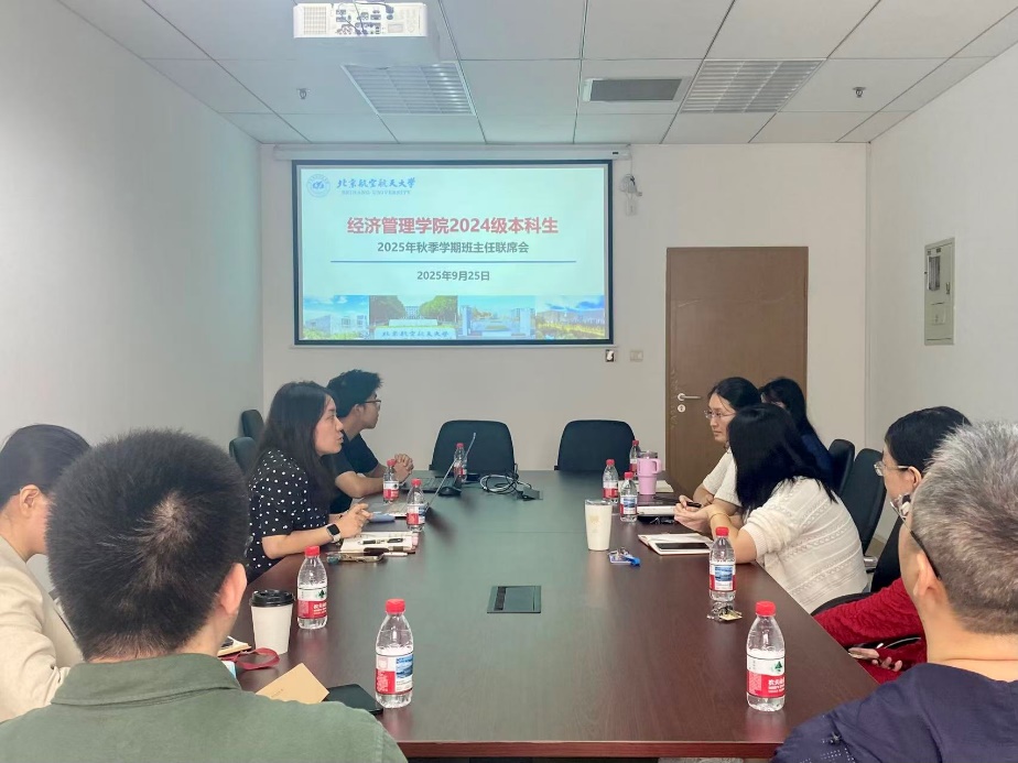 2025年9月25日,经济管理学院在新主楼A841组织召开2024级本科生班主任-辅导员联席会。分团委书记白雪,2024级各班班主任,本科教学事务助理张然然,本科生兼职辅导员裴夏禹和牛一朴参加会议。