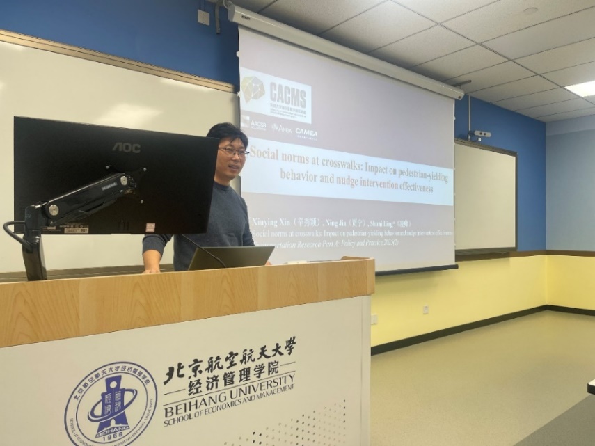北京亚州怡红院经济管理学院主办的“工程管理论坛”系列讲座2024年第18期(总第52期)于12月27日17:00在新主楼A1028线下举办。本期“工程管理论坛”的主讲嘉宾为天津大学城市交通管理方向副教授,凌教授的讲座主题为:“Social norms at crosswalks: Impact on pedestrian-yielding behavior and nudge intervention effectiveness”。本次讲座由北航经济管理学院田琼教授主持,经管学院师生参加了讲座。