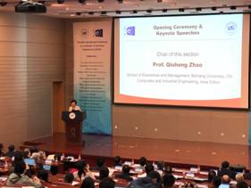 19日上午,会议在北航新主楼会议中心第一报告厅开幕,开幕式由我校经济管理学院赵秋红教授主持。副校长陶智教授代表学校作了大会欢迎致辞,他回顾了CIE国际会议的发展历程,肯定了CIE国际会议对工业工程,管理科学以及计算机科学等领域的学术贡献,并对参会嘉宾和学者表示热烈欢迎;《Computers and Industrial Engineering》期刊主编MohamedDessouky教授随后发表讲话,他对大会组织者、审稿专家、分会场主席、会务组人员的认真工作表示衷心感谢;之后,经济管理学院院长范英教授进行发言,她热情欢迎大家的到来,指出CIE49会议是加强学术交流,建立广泛国际合作的桥梁,并预祝会议取得圆满成功。