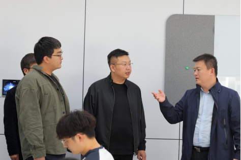 高超老师首先带领杨溪淼一行人参观了学院省部级重点实验室,包括“低碳治理与政策智能实验室”教育部首批文科实验室和“数据智能与智慧管理”工信部重点实验室,高超老师简要介绍了学院的发展历程、师资力量和学科发展。