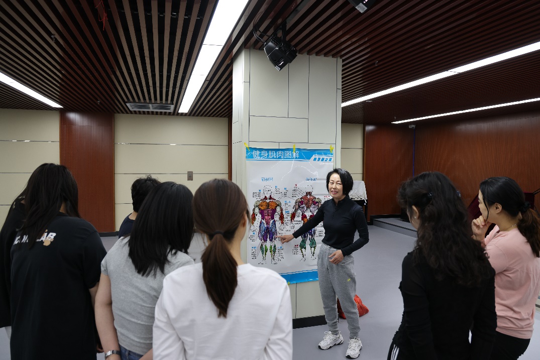 宫美凤教授借助肌肉图片,讲解了肌肉的分布与作用,让教师们清晰认识到身体结构与运动的紧密联系。随后,教授着重阐述了健身锻炼的必要性,强调其不仅能增强体魄,还能有效改善体态,缓解因长期伏案工作导致的身体不适,极大提升生活品质。
