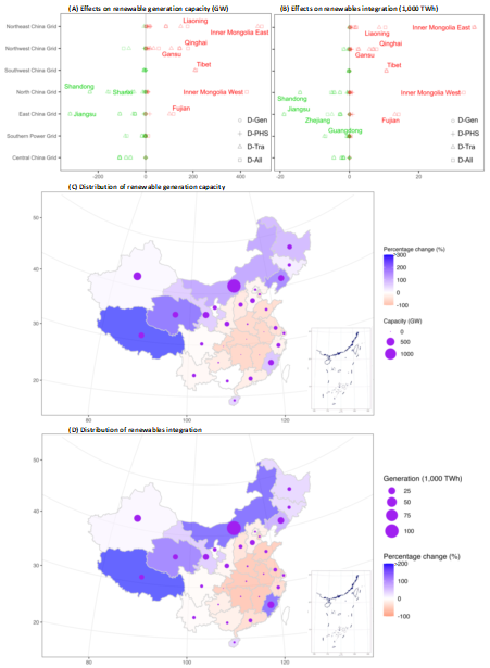 研究还发现,提高电力系统灵活性将改变未来我国电力系统的空间结构,促进电力系统基础设施向偏远地区部署,进而可能影响到我国未来发电量的空间结构、乃至经济社会发展和碳排放的地区结构。研究结果表明,部署灵活性资源有助于促进内蒙古、西藏、青海、辽宁和甘肃等偏远地区的可再生能源基础设施部署和发电,但这些地区的化石燃料发电以及碳排放也将增加;相比之下,部署灵活性资源将导致广东、江苏、山东、浙江等发达地区的可再生能源发电降低,以及更大幅度的碳减排。以上研究结果对未来电力系统低碳转型中灵活性资源部署如何影响我国的区域公平和可持续发展提供了重要启示。提高电力系统灵活性不仅有助于促进电力系统低碳转型,更重要的是有助于促进偏远欠发达地区的新能源投资、提升就业、促进经济发展,最终有利于我国的区域均衡发展战略。