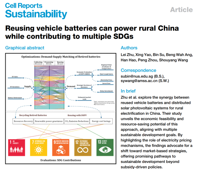 【论文快线】Cell Reports Sustainability:动力电池梯次利用助力中国农村实现可持续发展目标